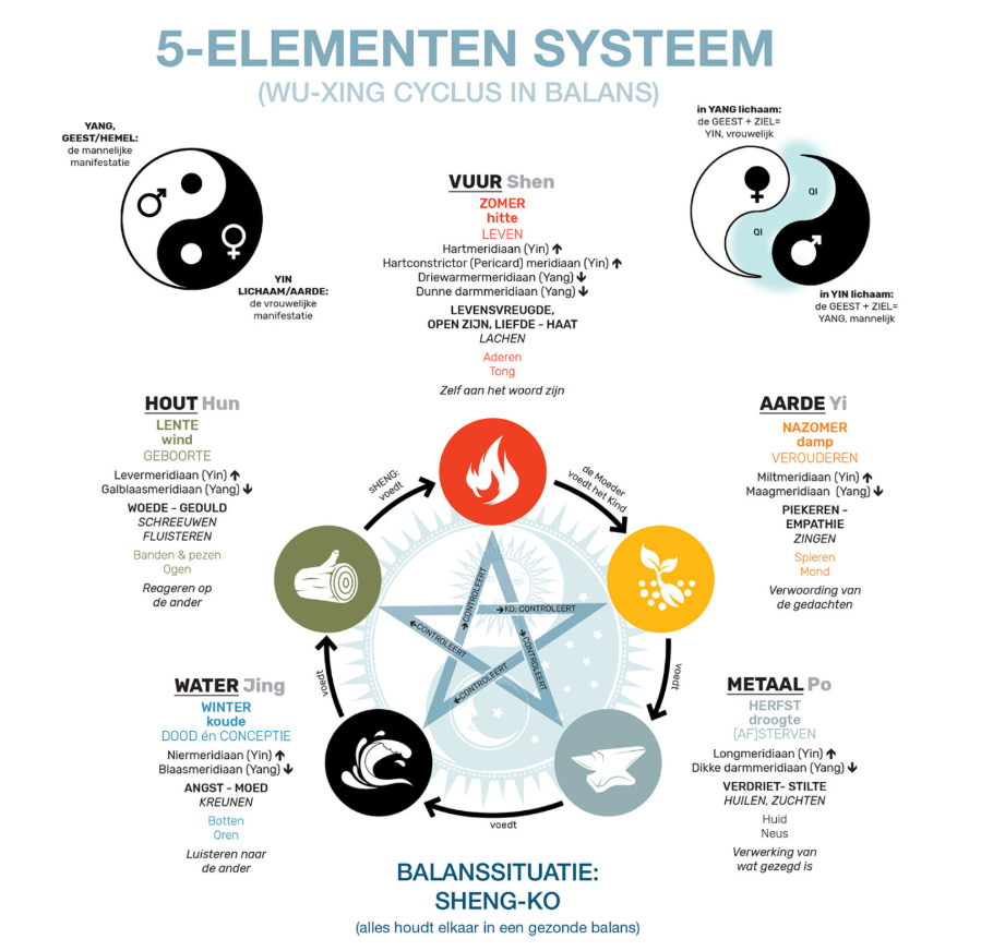Bijvoorbeeld: boosheid aan de Lever, verdriet aan de Longen en angst aan de Nieren.